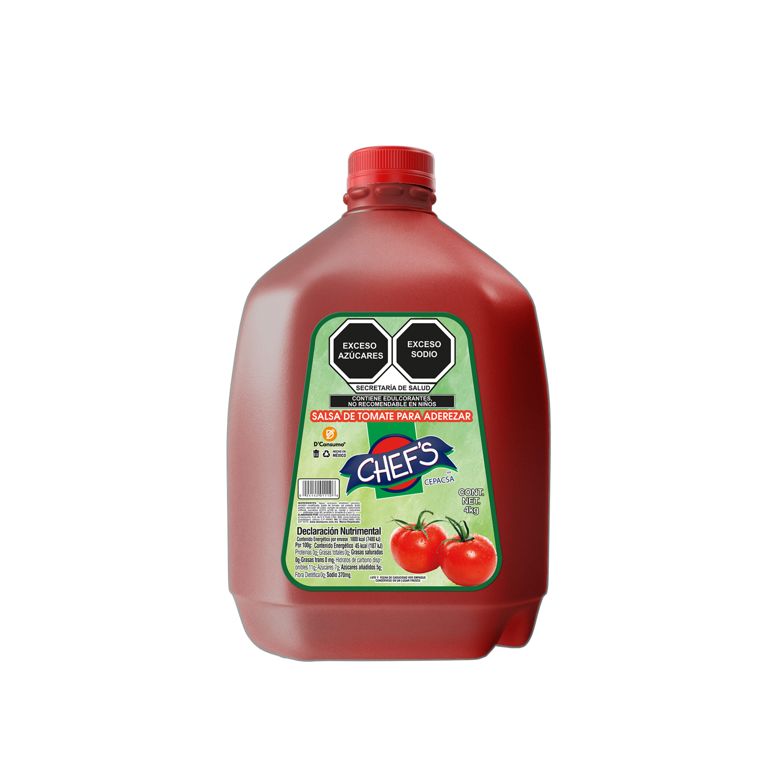 Salsa imitación cátsup, obtenida por la concentración de jugo y pulpa de tomates, condimentada con especias, azúcar y sal. Tiene la ventaja de ser baja en calorías sin perder su delicioso sabor.